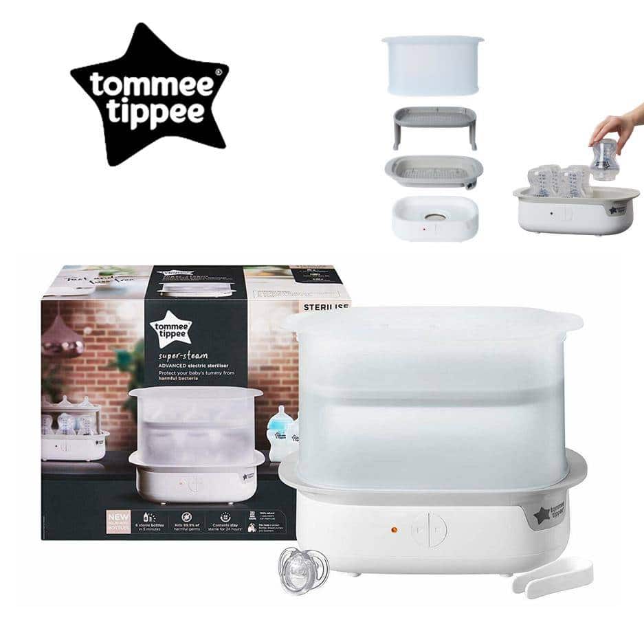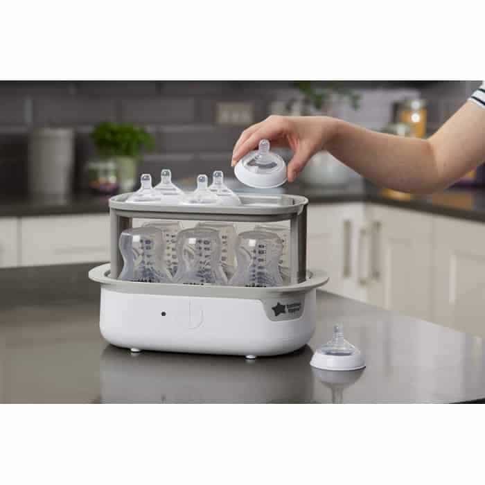 Having clean, sterilized bottles ready for every feed is an essential part of caring for your baby. With the Tommee Tippee Advanced Steam Steriliser, you can sterilize up to 6 bottles in just 5 minutes, and the new design means it holds more bottles at a time, too.